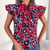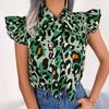 GMXIA Damenmode, lässig, Sommer, ärmellos, V-Ausschnitt, lockere Blusen und Chiffon-Oberteil mit Leopardenmuster, mit Holzohren besetzten und gebundenen Hemden