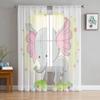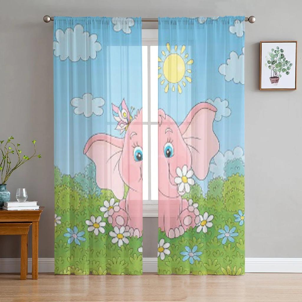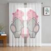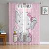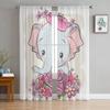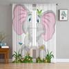 Kleine rosa Elefanten-Tüll-Vorhänge für Küche, Fenster, Wohnzimmer, moderner Voile-Vorhang, Schlafzimmer-Vorhänge