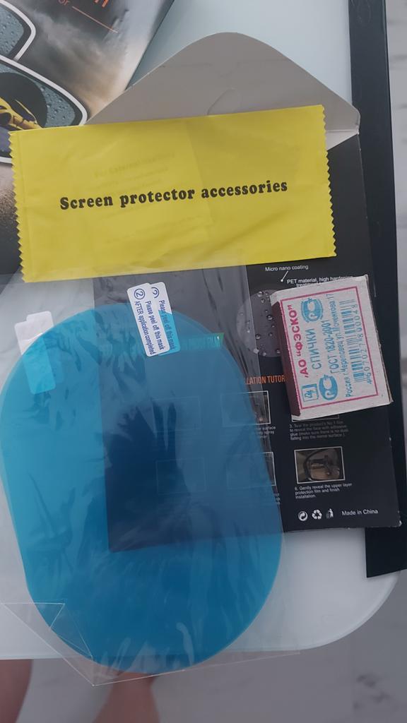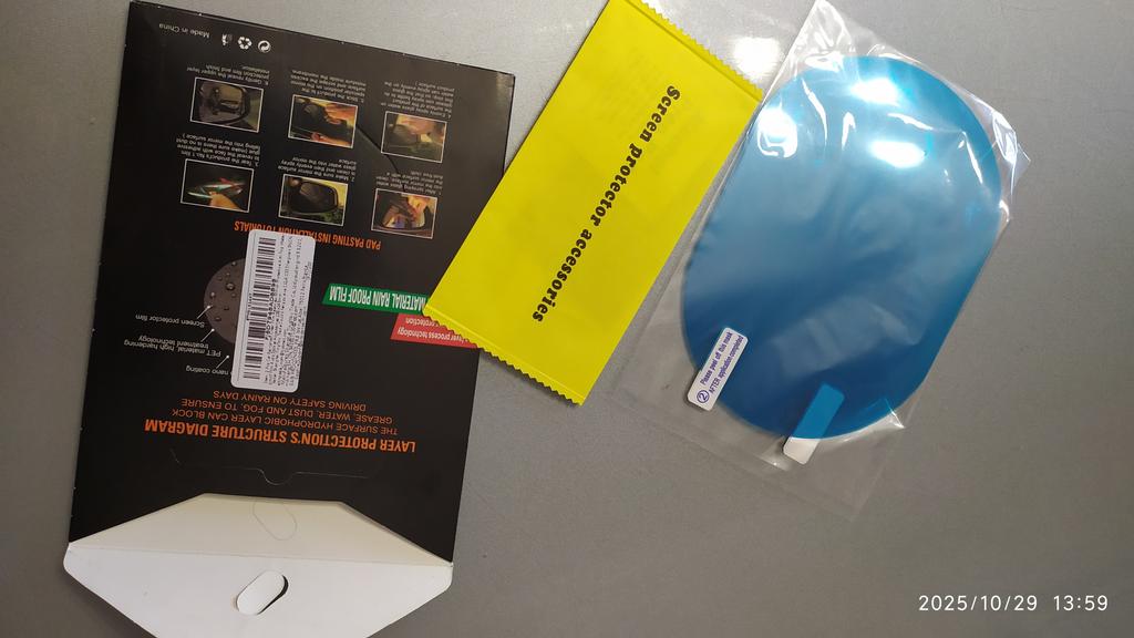Zu groß, musste geschnitten werden. Das erste habe ich nicht sehr gut geklebt, bis ich herausgefunden habe, wie man es richtig macht, das zweite ist besser geworden, aber es hat nicht sehr gut gepasst, an einigen Stellen blieben Blasen, egal wie sehr ich versuchte, sie auszugleichen , ich denke es kommt auf den Spiegel an. Es erfüllt die Funktion, es war nach dem Regen durchsichtig. Später werde ich mehr bestellen und neu kleben.