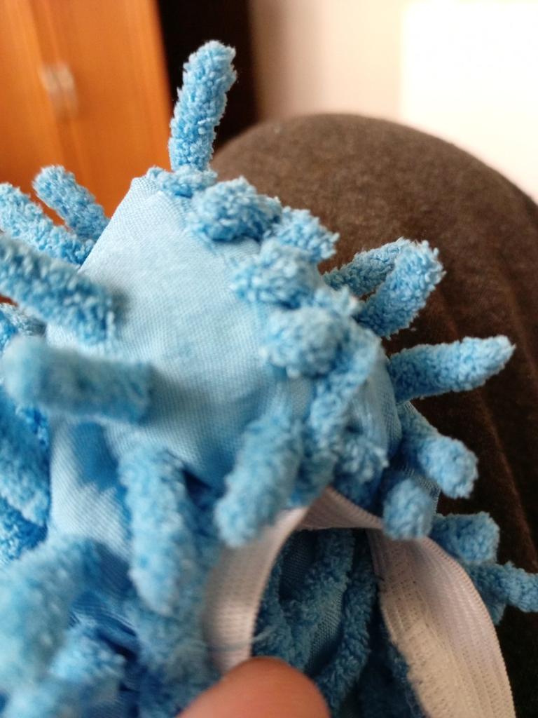Das Gummiband steht ab, die Fransen sind in die Naht eingenäht. Es hätte behoben werden können.