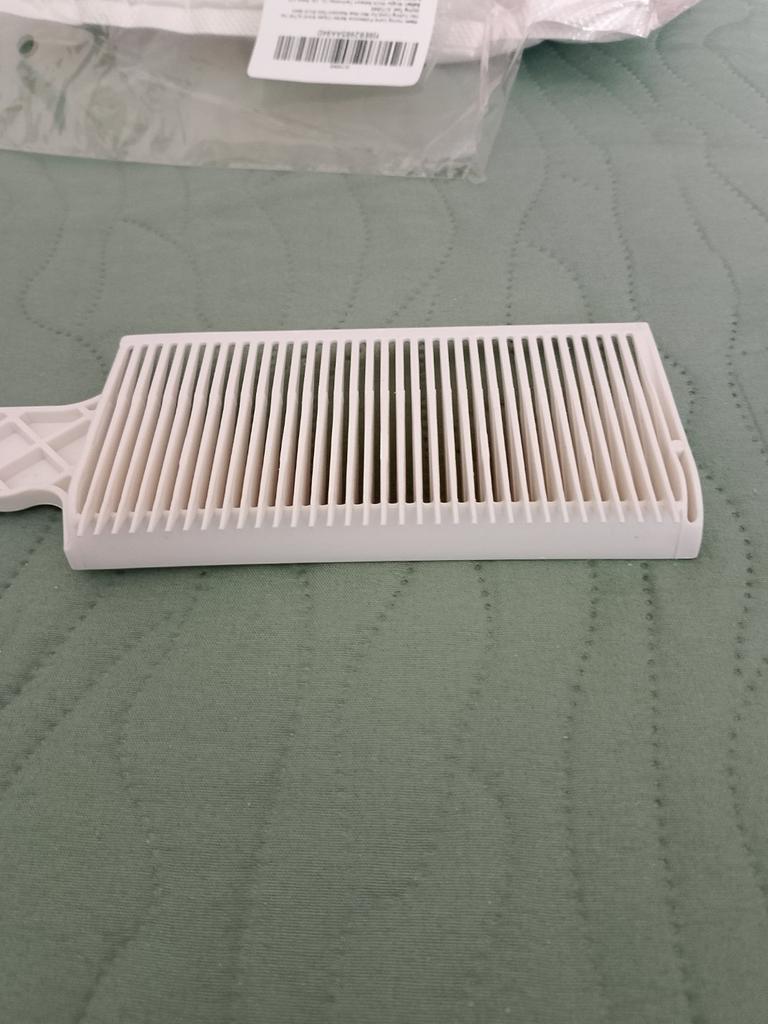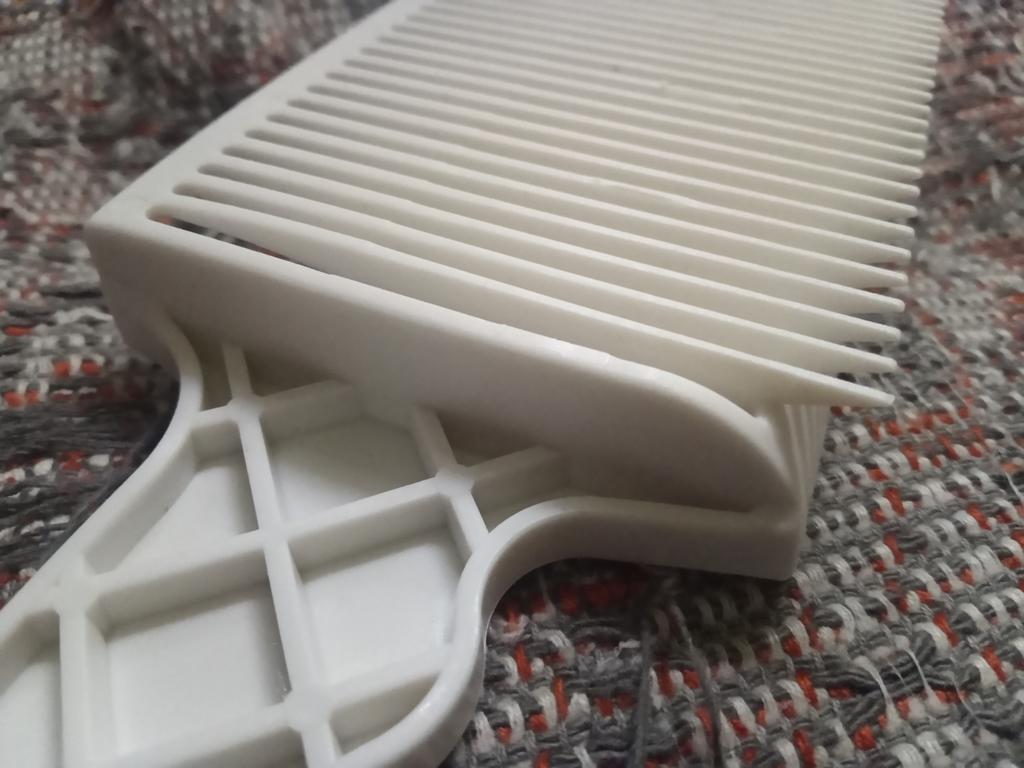 Ich habe den Haarschneidekamm erhalten, werde ihn testen. Der Kunststoff ist hart und geruchlos. Liegt gut in der Hand. Empfehlenswert