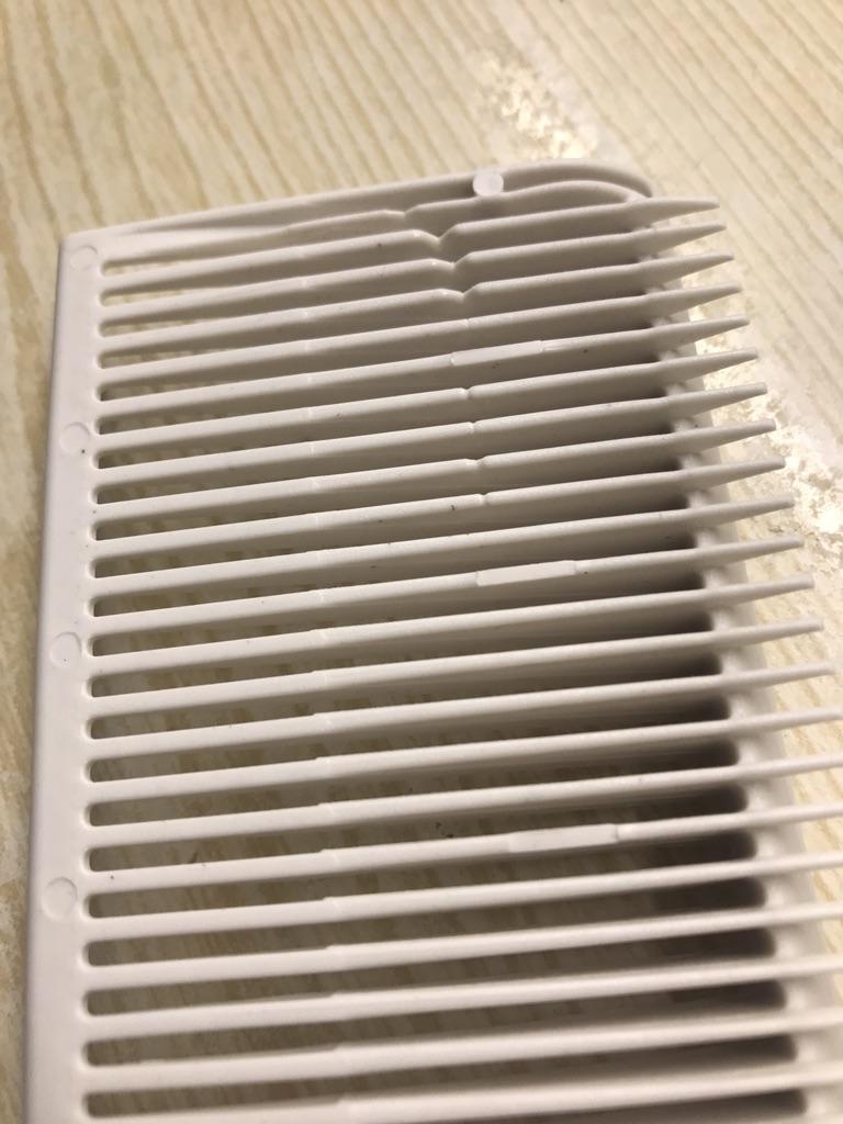 Der Kamm kam mit zwei fehlenden Zinken unten an. Sie waren nicht in der Verpackung. Das heißt, er wurde so hineingelegt.