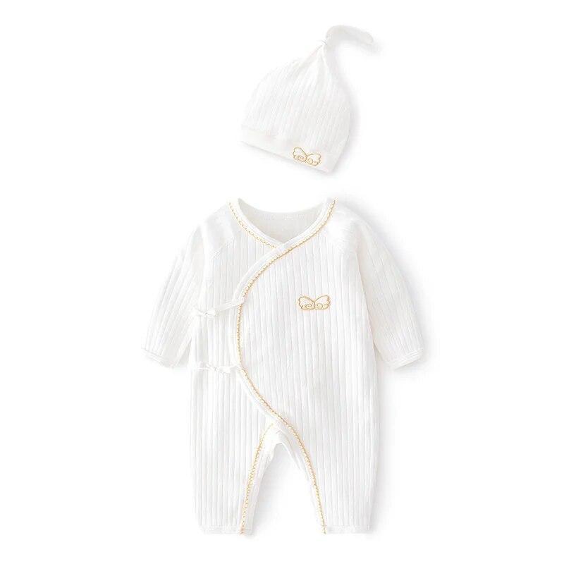 0-6M Frühling Baby Mädchen Jungen Strampler Hut Baumwolle Weiß Kleidung Für Mädchen Mode Säuglings Overall Neugeborenen Babys 0 bis 3 M