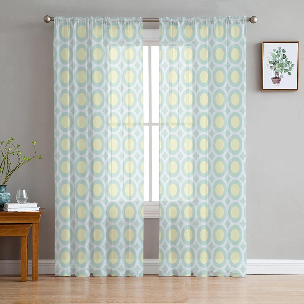 Runde gelbgrüne farbige Tüllvorhänge für Wohnzimmer, Küche, Schlafzimmer, transparenter Tüll für Café, Hotel, moderne Heimdekoration