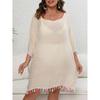 Damen-Cover-Ups-Kleid, Übergröße, Quaste, Spleißen, Ein-Ausschnitt, sexy, rückenfrei, Strand-Badebekleidung, Cover-Ups