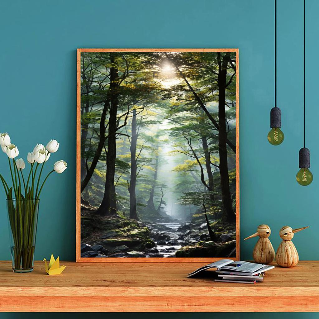 Diamantmalerei zum Selbermachen, Bach im Wald, Kreuzstichset, Mosaikkunst, Diamantmalerei, voller Kreis/quadratischer Diamant, Heimdekoration