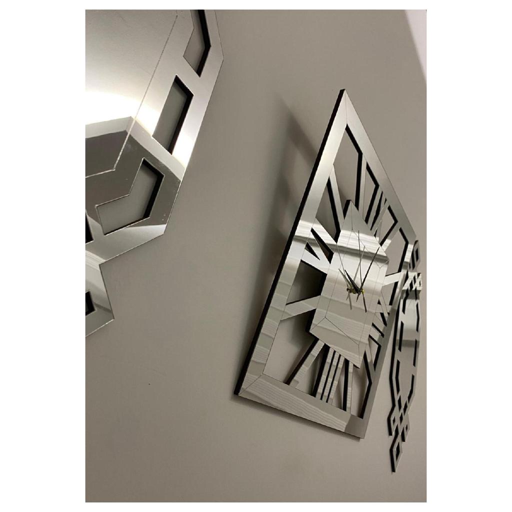 Dekorative Wanduhr im 3er-Set, 60 cm, silberfarben, luxuriöse römische Ziffer, quadratische Wanduhr, 30 x 70 cm, Baklava-Gemälde