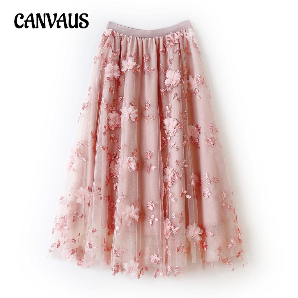 Frühling und Herbst frauen Rock Mesh Stickerei Halb-körper Rock Sanftes Temperament Mittellangen Rock Frische Fee Rock