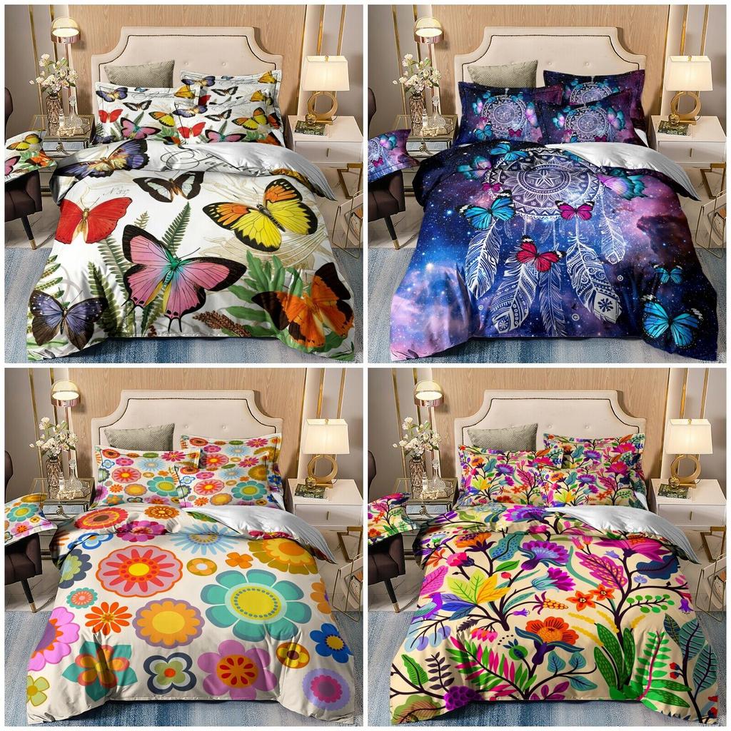 Blumen Schmetterling Quilt Bettdecke Bettbezug Set Queen King Size Bettwäsche Kissenbezüge