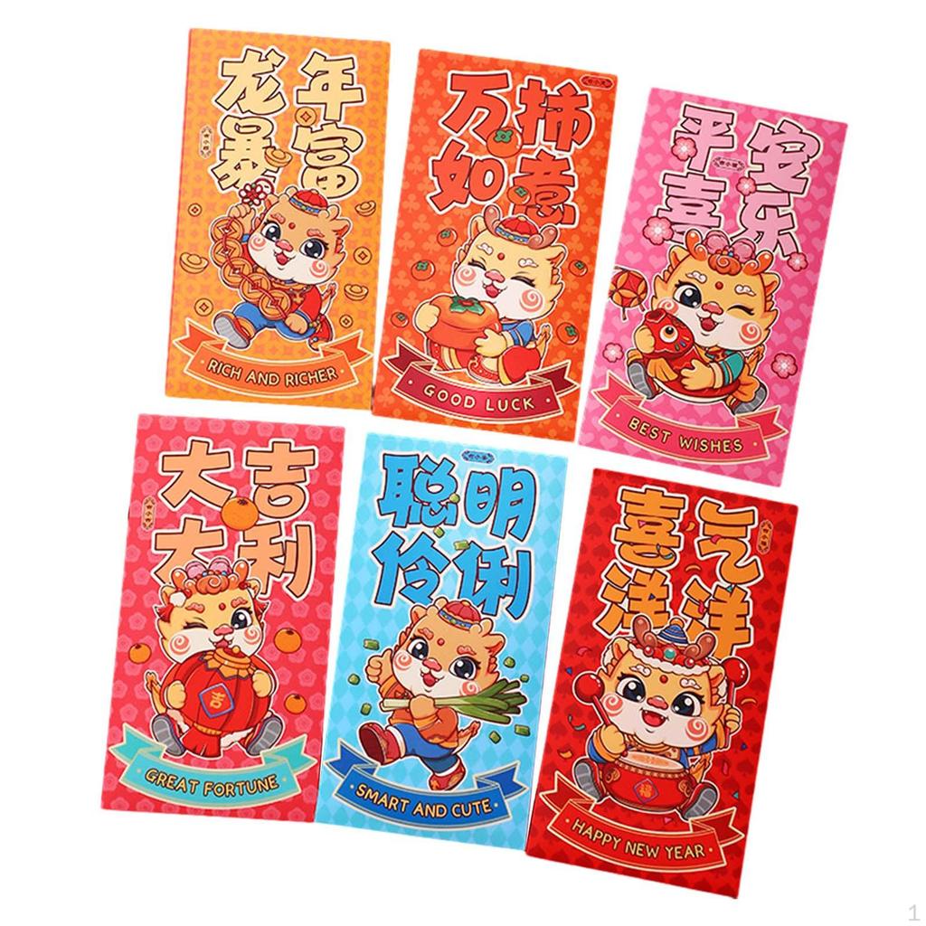 - 【2024 Jahr des Drachen】: Das Paket enthält 6 entzückende rote Umschläge mit Cartoon-Drachenmotiv, perfekt für das Jahr des Drachen.. Sie sind mit einem einzigartigen und kreativen Cartoon-Effekt gestaltet, was sie zu einer lustigen und festlichen Art macht, während des chinesischen Neujahrs Geschenke zu überreichen.
