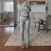 Damen-Set, modisch, einfarbig, Rundhalsausschnitt, Langarm, Oberteil, weites Bein, Hose