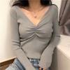 Frauen Herbst V-ausschnitt Langarm Einfarbig Slim Fit Pullover Strickpullover Tops