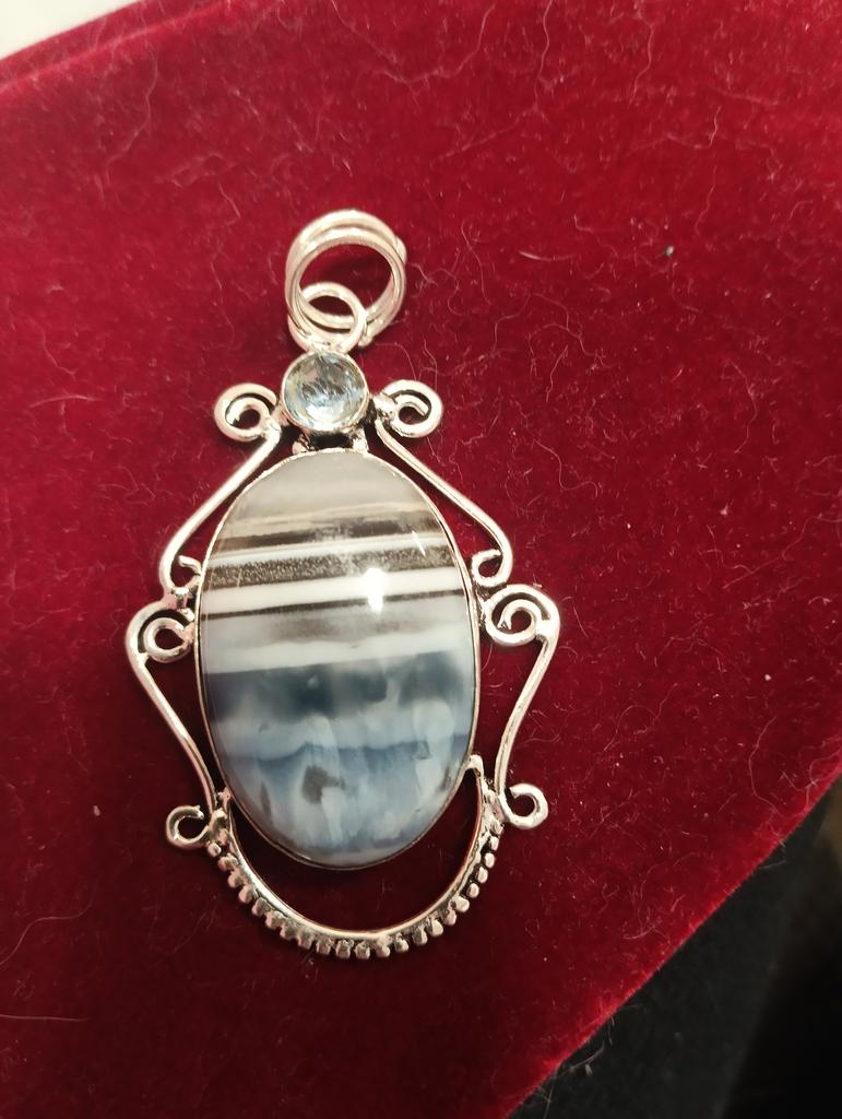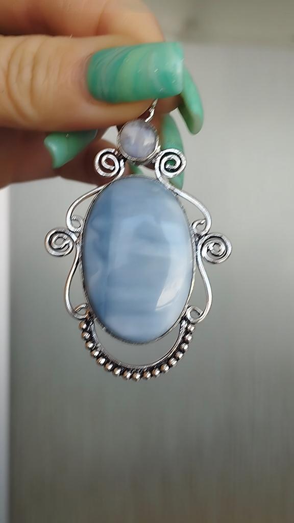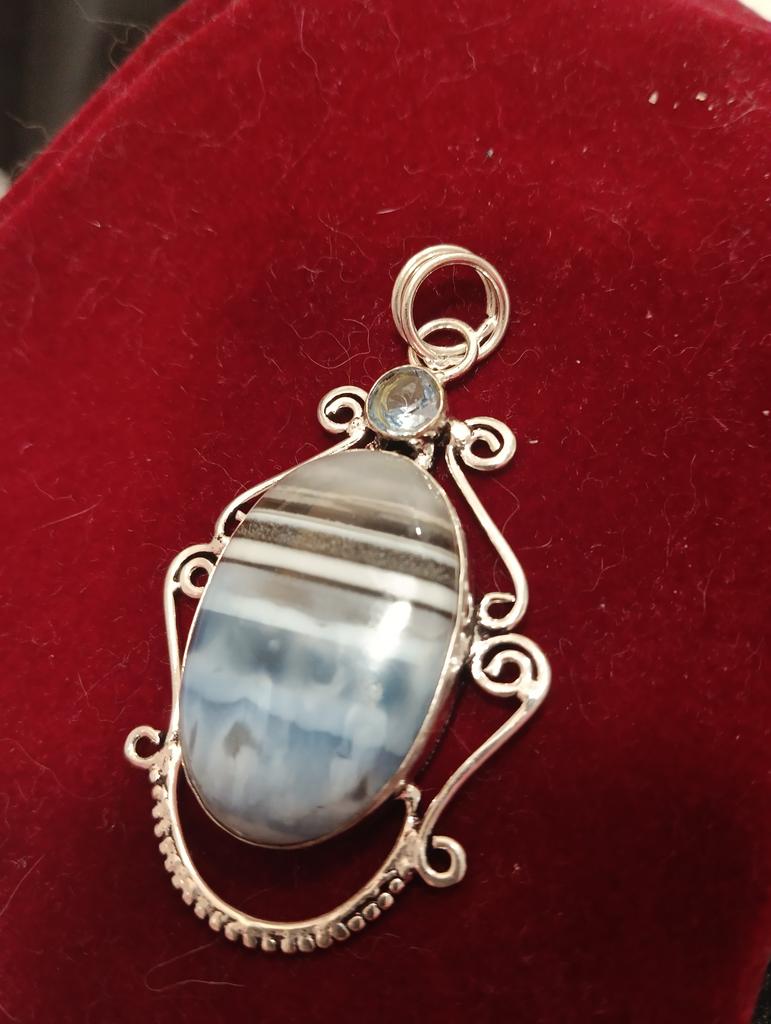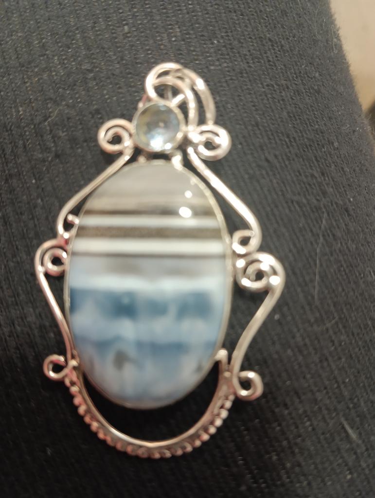 Natürlicher blauer Spitzenachat, Mondstein 925 Sterling Silber Anhänger 3,15" E1E76