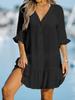 Sommer-Bikini-Überzug für Damen, neues Kleid mit V-Ausschnitt und Rüschen und langen Ärmeln, einfarbiges Minikleid, Strandmode-Überzug für Damen