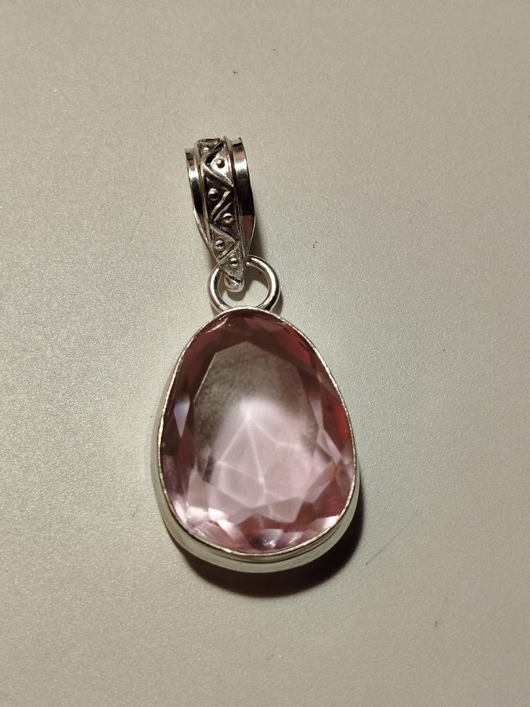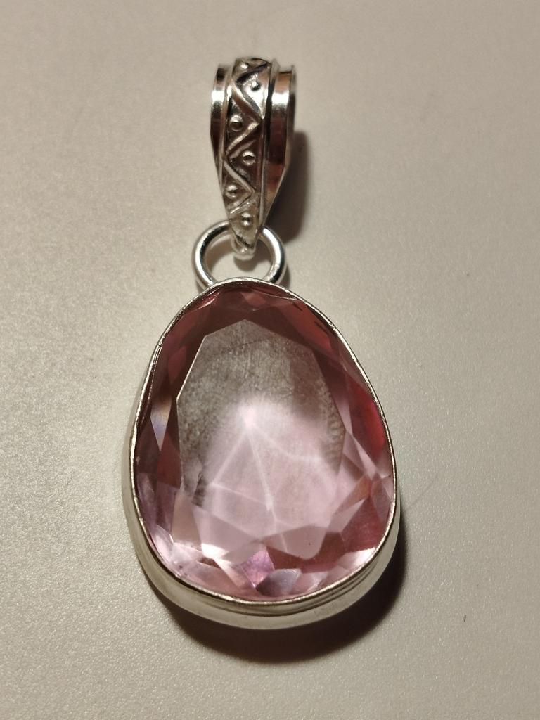 Die Farbe ist fast durchsichtig. Ich habe es als Ergänzung zum Ring gekauft. Der Stein im Ring ist rosa, im Anhänger jedoch fast farblos.