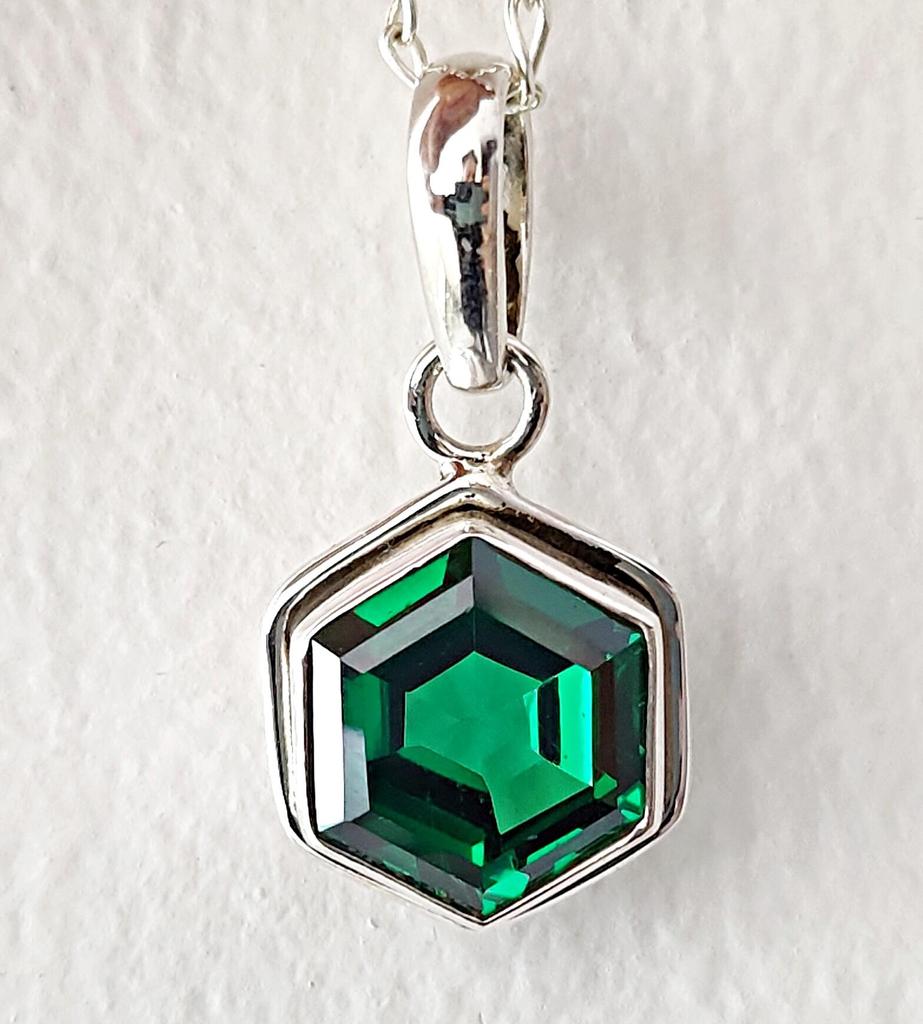Smaragd Halskette, Edelstein Anhänger, 925 Massiv Sterling Silber, Handgefertigter Schmuck, Grüne Sechseck Form, Geschenk für Frauen