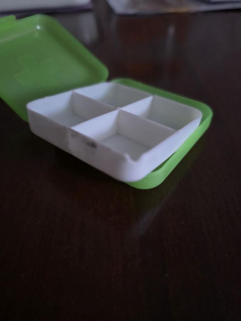 Die Pillendose ist klein, wie ich es wollte, und passt sogar in eine kleine Tasche. Der Artikel kam in einem Sammelpaket an.
