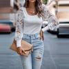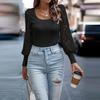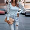 Damen Herbst/Winter Einfarbig U-Ausschnitt Langarm Cut Flower Sexy Strickoberteil