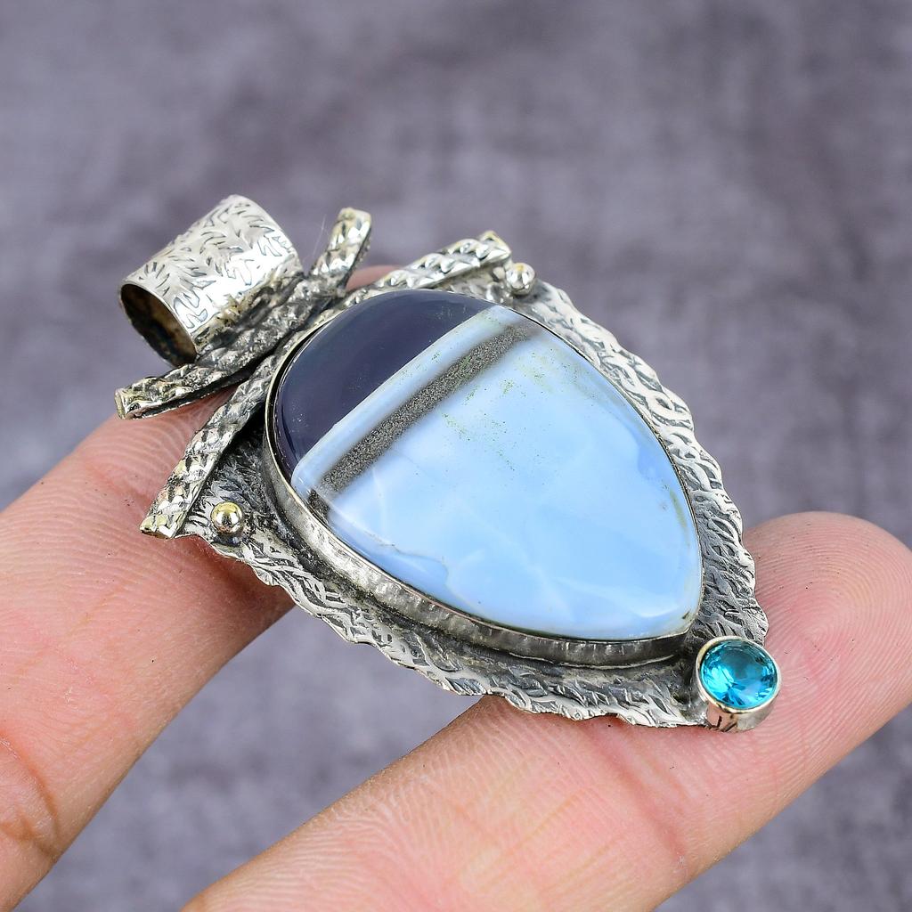 Natürlicher Owhyee Opal, Blauer Topas Edelstein 925 Sterlingsilber Anhänger 2,25" C6n73