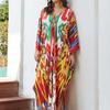 YYFS Damenmode Urlaub Sommer Frühling Blumenmuster Druck Langarm V-Ausschnitt Freizeitkleider