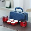 1 Set Reise Tee-Set Porzellan Tee-Set Kungfu Tee-Sets Mit 1 Teekanne (mit Sieb) 4 Teetassen Teekanister Aufbewahrungstasche Alles in einem Geschenk für Picknick O