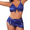 Damen Badeanzüge Neckholder-Ring-Bikini-Set mit Überzugsrock Badeanzug für Damen Shorts