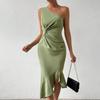 Mit einer Schulter sowie einem rückenfreien Design kann dieses Kleid Ihr Schlüsselbein und Ihren schönen Rücken gut zur Geltung bringen und ist sehr schlank, was Ihnen helfen kann, eine schöne Figur zu umreißen.