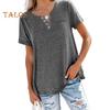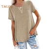 Material: Das Damen-T-Shirt ist aus einem weichen und hautfreundlichen Baumwollmischgewebe gefertigt und sorgt für ganztägigen Tragekomfort. Das lockere und atmungsaktive Design macht es zu einem vielseitigen Kleidungsstück für Ihre Garderobe, perfekt für Frühling und Sommer.