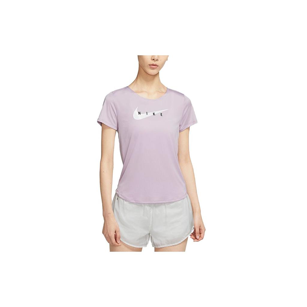 Nike Swoosh Logo Print Sport Crew Neck Short Sleeve T-Shirt Women Tops Light-Purple CZ9279-576