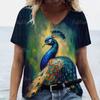 Damen-T-Shirt mit 3D-Pfauenfeder-Aufdruck, modisch, kurzärmlig, ästhetisch, lässig, V-Ausschnitt, lässige T-Shirts für Frauen