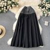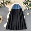 Jeansrock Damen Design Kontrastfarbe Patchwork Schwere Industrie Falten Langer Faltenrock Hohe Taille Schlankmachender A-Linienrock