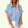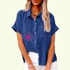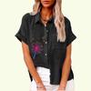 Damenmode Revershals T-Shirt Sommer & Herbst Blumendruck Top mit Tasche Lose Kurzarm T-Shirt Damen Casual Leinen Blusen