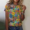 T-Shirt mit Blumendruck Damen 3D-Blumendruck O-Ausschnitt T-Shirt Mode Y2k Kleidung Sommer Übergroßes Y2k T-Shirt Damenbekleidung