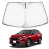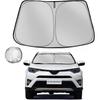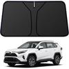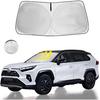 🚗【PERFEKTE KOMPATIBILITÄT FÜR IHR AUTO】- Omocyra Sonnenschutz für die Windschutzscheibe, maßgeschneidert für Toyota RAV4 SUV Crossover, LE, XLE Premium XSE Adventure Hybrid Prime 2024 2023 2022 2021 2020 2019, verstärkter Stahlring und Klettverschluss können um den Rückspiegel herum angebracht werden, sodass der Sonnenschutz für die Windschutzscheibe perfekt an der vorderen Autoscheibe befestigt wird, kein Lichtverlust, präzises Passformdesign, löst sich nicht leicht