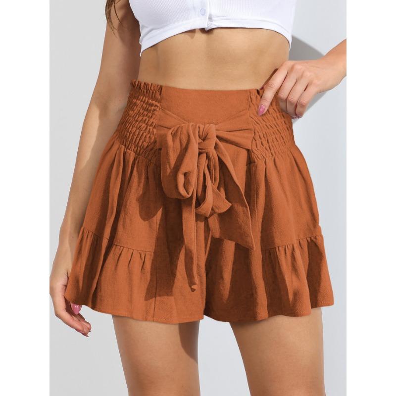 Sommerliche Shorts mit weitem Bein und Riemchen für Damen, drapiert, vielseitige Freizeithose