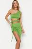 Damen-Blusen- und Rock-Set, modisch, für die neue Saison, braun, gestrickt, ausgeschnittenes Fenster, One-Shoulder-Blusenrock-Set
