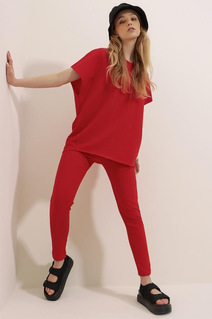 Es kann mit Freude von Frauen getragen werden, die gerne Sportbekleidung tragen, mit seinem flexiblen, weichen, aus Baumwolle und Viskose gemischten leichten Stoff, Slim-Leg-Sweatpants, Baumwollstoff, kurzärmliges Relax-Fit-Topmodell mit Rundhalsausschnitt und ist äußerst nützlich beim Pilates, Laufen, Meditieren und Yoga.. Hier ist das bequeme Trainingsanzug-Set mit Rundhalsausschnitt, das Sie mit seinem bequemen Modell bei Ihren Sport- und Basiskombinationen bequem verwenden können!!