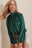 Mit seinem stylischen Stehkragenmodell und der regulären Passform ein Must-Have im Kleiderschrank stilvoller Modeliebhaber. Mit seiner weichen Samtstruktur können Sie es problemlos mit Ihrem Maxirock, Minirock, hoch taillierten Jeanshosen, Blazer-Jacken, gewebten Hosen, Jeanshosen und Strumpfhosen tragen, sowohl im Alltag als auch klassisch. Alaçatı Style Samtbluse mit Stehkragen und Raffungen vorne, die Sie mit Ihrer Kleidung kombinieren können, wartet auf Sie!!!.