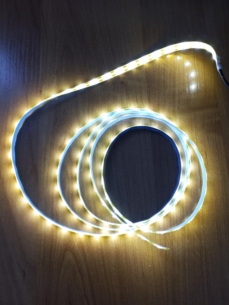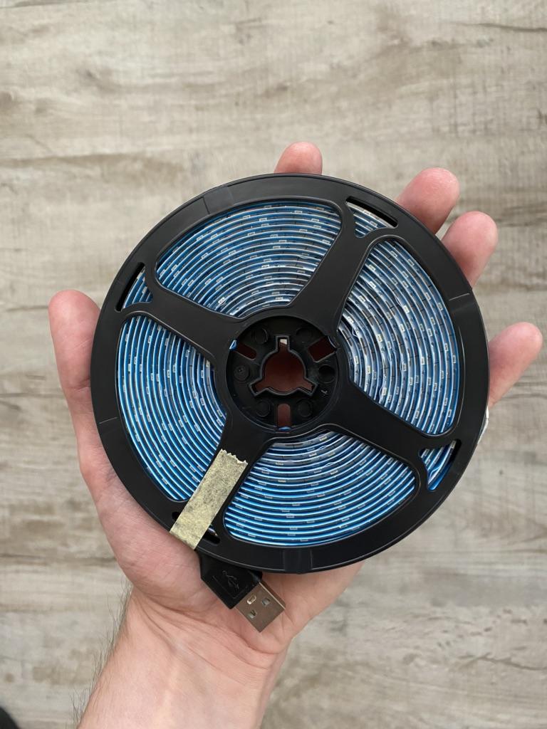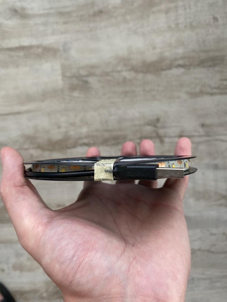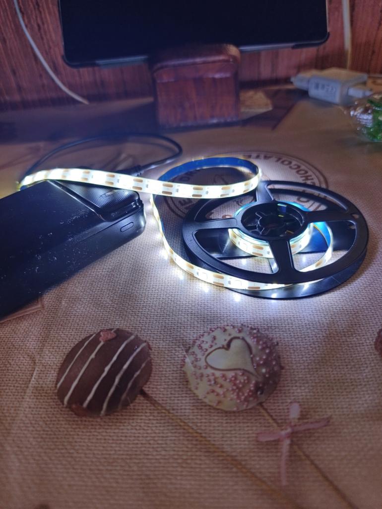 Ich habe 5 Meter Band gekauft, es beleuchtet den Raum wunderbar mit einem angenehmen warmen und hellen Licht, wird über eine Powerbank betrieben.