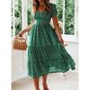 2024 sommer Neue frauen Kleid Square Neck Gedruckt Sexy Backless Kleid Kurzarm Lange Elegante Mode Kleider Für Damen