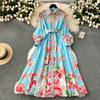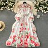 Einreihige Hemdkleider für Damen Frühling Herbst Druck Vintage Mode Elegant Palast Stil Langes Kleid