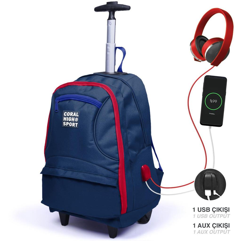 coral high Sportlicher marineblau-roter USB-Trolley-Rucksack mit vier Fächern 23254