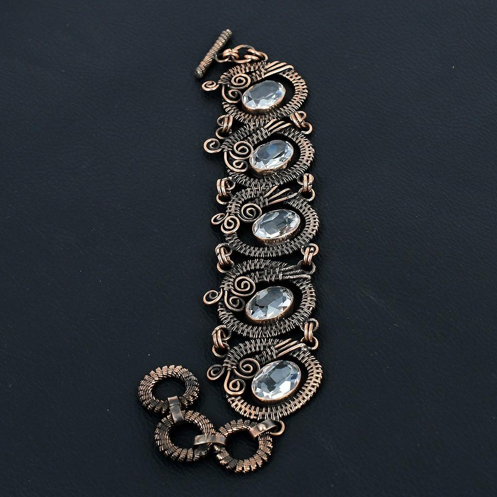 Weißer Topas Edelstein Handgemachtes Armband aus reinem Kupferdraht umwickelt Schmuck für Frauen