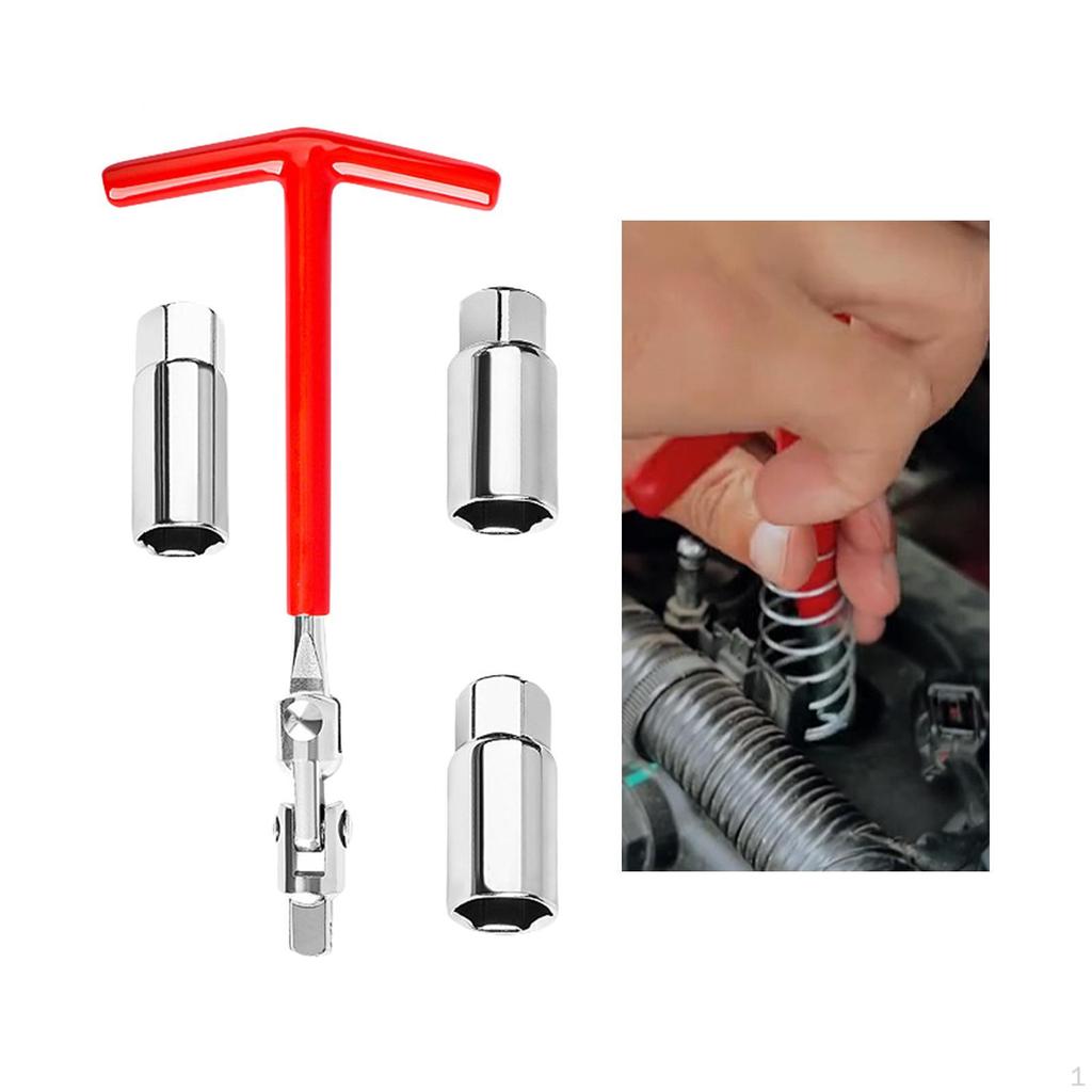 - 【Paket】: Der Zündkerzenschlüssel mit T-Griff wird mit drei verschiedenen Steckschlüsselgrößen geliefert (16mm, 18mm, 21mm), Dadurch ist es vielseitig einsetzbar und einfach zu bedienen für verschiedene Zündkerzentypen.