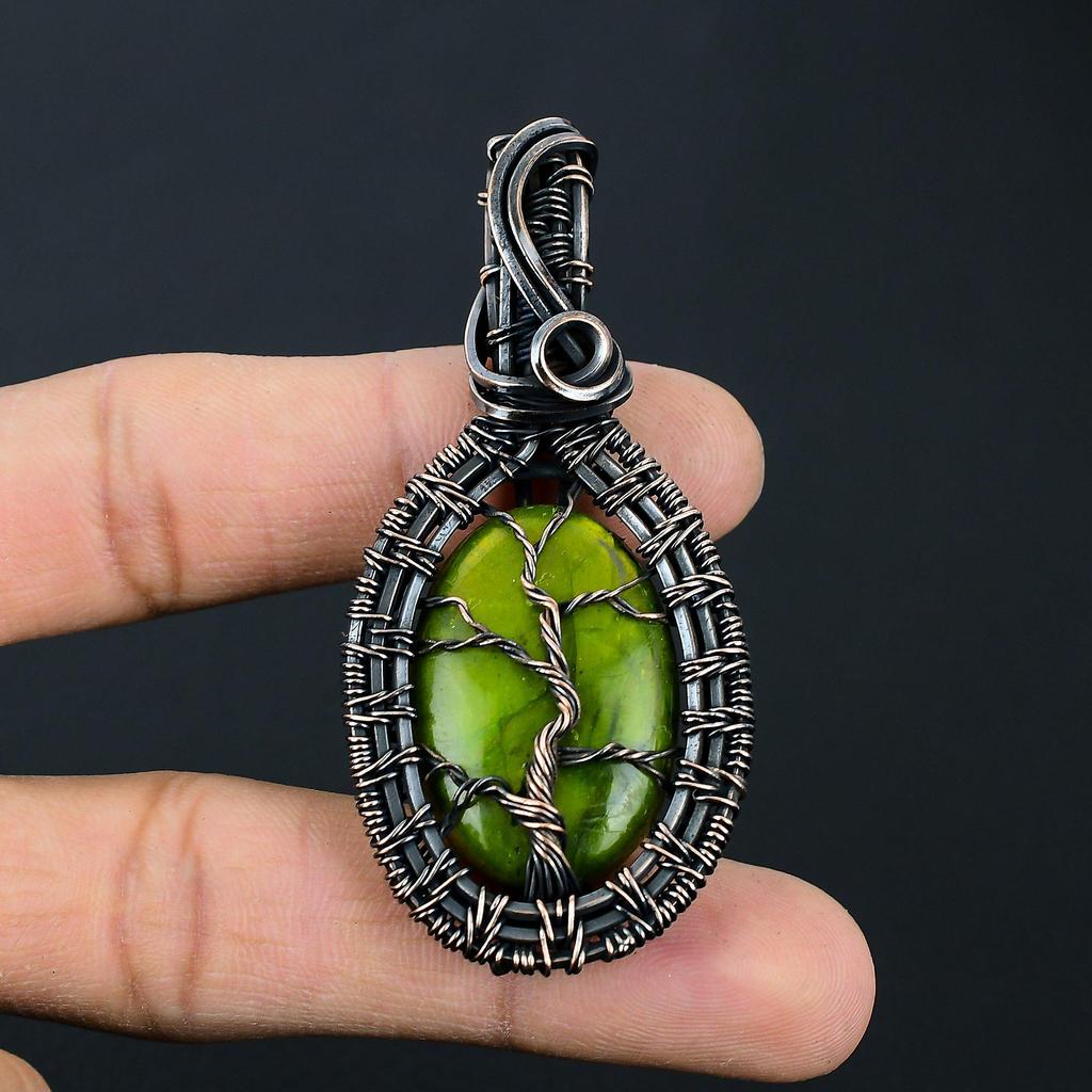 Tree Of Life Green Flash Labradorite Gemstone Handmade Pure Copper Wire Wrap Jewelry Pendant For Women