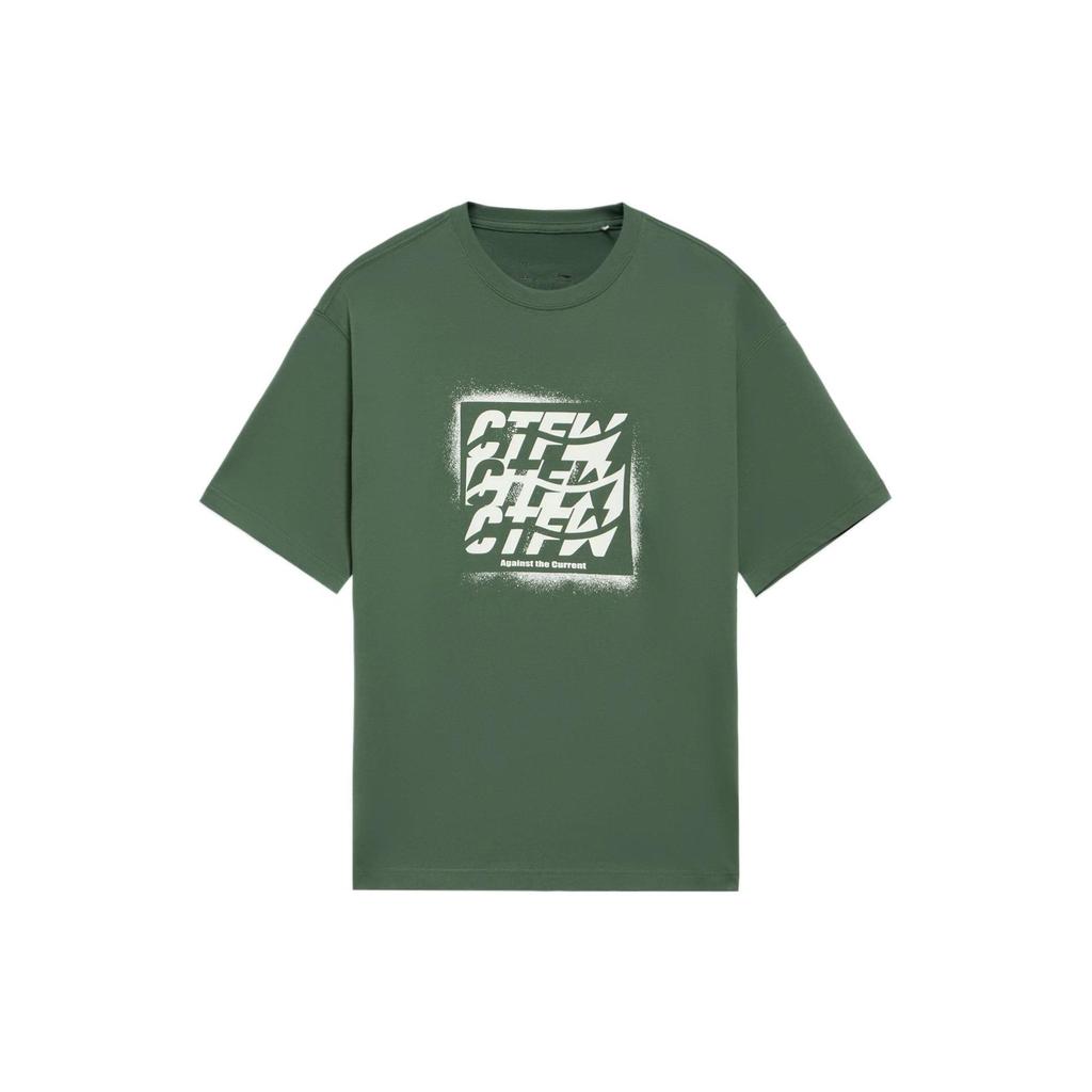 Li-Ning CF Series Letter Print Loose Round Neck Short Sleeve T-Shirt Men Tops Misty-Pine-Green AHSS587-4