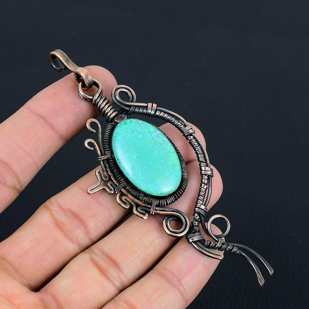 Australischer Triplet-Opal-Edelstein, handgefertigt, reiner Kupferdraht, Wickelschmuck, Anhänger für Frauen