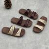 Johnature Echtes Leder Atmungsaktive Flache Hausschuhe Für Damen Retro Vielseitige Römersandalen Mit Weicher Sohle