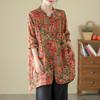 QICED Bedrucktes Hemd aus Baumwolle und Leinen für Damen, lockeres Oberteil, Retro, mittellanger Leinenmantel, Frühling/Herbst