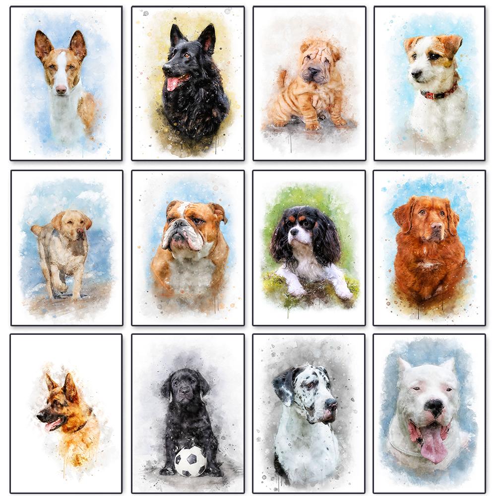 Aquarell Tiere Niedlicher Hund Bunter Druck Poster Leinwand Malerei Hd Modern Wandkunst Bild Für Wohnzimmer Schlafzimmer Heimdekor